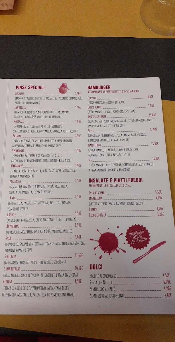The menu at Inn Teglia at Viale Roma, 32, in Passignano sul Trasimeno is a delightful showcase of traditional Italian flavors elevated with thoughtful touches. The pizzeria section impresses with the Pizza Salsiccia E Mozzarella and Pizza Salsiccia E Friarielli, both featuring perfectly balanced toppings on a crisp, flavorful crust that speaks to careful dough preparation. For a more diverse tasting experience, the Tagliere Misto offers a generous assortment of cured meats and cheeses, ideal for sharing and sampling regional specialties. The Pinsa Romana Inn Teglia stands out for its airy, golden base, delivering a lighter alternative to classic pizza without sacrificing taste. Fried selections such as the Fritto Misto are executed with precision, maintaining a delicate crunch while highlighting the freshness of each ingredient. Pasta lovers will appreciate the rich, creamy flavors of the Tonnarello Carbonara, which exemplifies traditional Roman technique with perfectly cooked noodles and a harmonious balance of sauce and seasoning. Overall, the menu combines comforting classics with well-curated regional touches, making each dish a satisfying and authentic Italian experience that caters to a range of tastes while showcasing the culinary expertise of the kitchen.